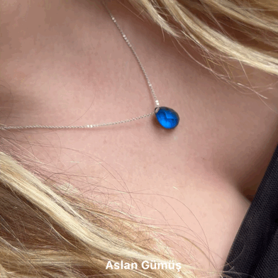 Aslan Silver™ 14 Ayar Gümüş Kaplama Kalsit Hissi Taş Kolye